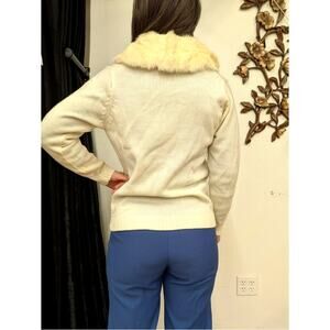 Vintage Ivory Cable Knit Cardigan With Real Fur Collar