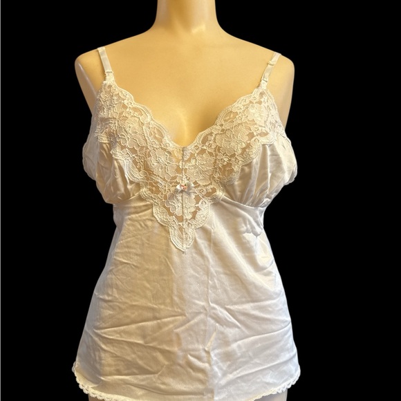 Vintage Ivory Chemise Nylon Lace Nightgown Top Size S/M