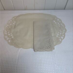 Vintage Ivory Cream Oval Scalloped Battenberg Placements Napkins Setting for 4