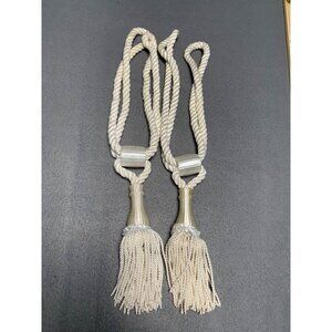 Vintage Ivory Curtain Tie Backs Pair with Tassels 17" Long Decorative Rope Holdb