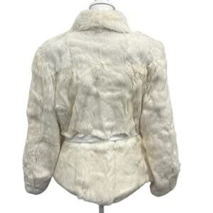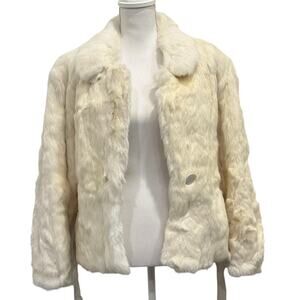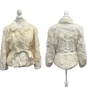 Vintage Ivory Genuine Rabbit Fur Satin Lined Belted Coat Mob Wife Glam Old Money