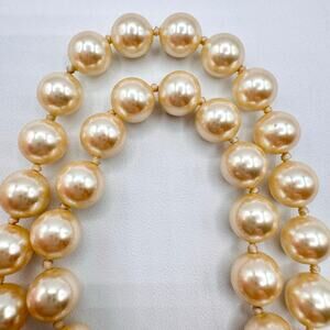Vintage Ivory Glass Pearl Hand Knotted Necklace Box Clasp Wedding Bridal 18”