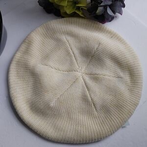 Vintage beret Knit style Crème in color with gold metallic accent By Caroline Long Measures 11.5" across