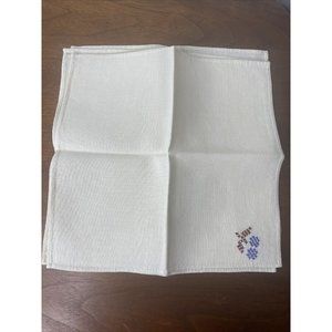 Vintage Ivory Napkins Linen Floral Embroidered Purple Tea Towel Set 4
