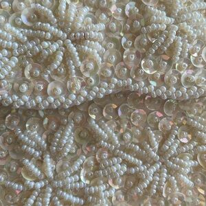 Vintage Ivory Satin Beaded Iridescent Sequin Clutch Evening Bag