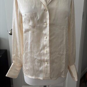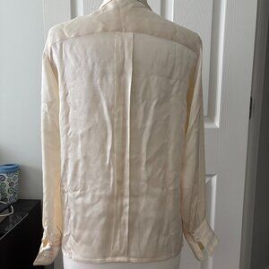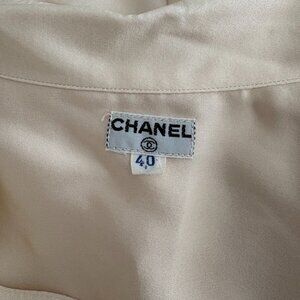 Truly one of the most luxurious items of clothing I have ever seen. Estate find. Creamy ivory color. 39” chest, 24 ½” sleeves have 1 button at the cuff. Can be worn straight down or turned up. 24” from shoulder to straight hem. 5 buttons down the front are engraved with signature Chanel double C logo. 1 front chest pocket is embroidered with the double C logo as well. Notched collar. Dry clean only of course. Amazing condition. Please check out the other items in my closet. Bundle and save.