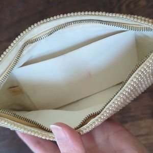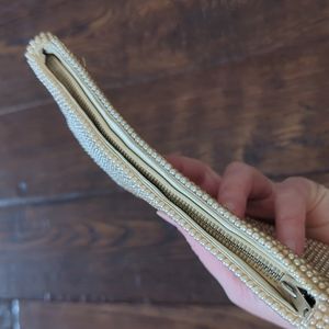 Vintage Ivory White Faux Pearl Encrusted Clutch Evening Purse