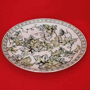 Vintage Ivy Embossed Ceramic Decorative Plate White Green Leaves Gilded Rim