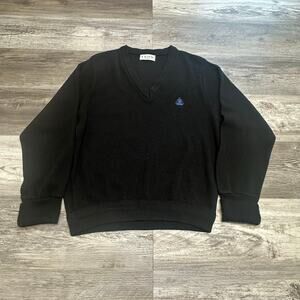 Vintage Izod Blue Mens M V-Neck Crest Chest Spell Out Logo Acrylic Knit Sweater