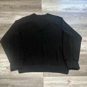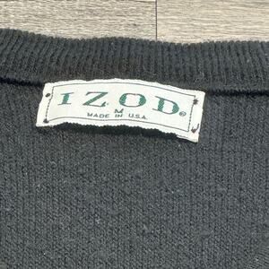 Vintage Izod Blue Men's Size Medium V-Neck Crest Chest Spell Out Logo Acrylic Knit Sweater long sleeve embroidered logo elasticized hem and cuff pullover stretch 1980s grandpa grandpacore retro preppy made in USA