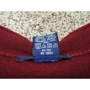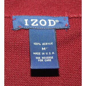 Vintage Izod Button Up Cardigan Sweater Red V Neck Crest Logo Medium Made in USA