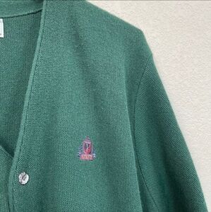 Vintage Izod Green Acrylic USA Made Academia Preppy Knit Cardigan Men's Large