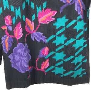 Pre-owned vintage condition, Vintage Izod Knitted by Hand Sweater Floral Stars Geometric Pattern Ramie Cotton Blend 80s 90s Retro