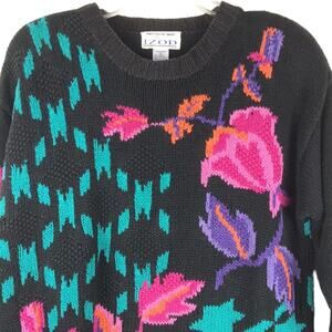 Pre-owned vintage condition, Vintage Izod Knitted by Hand Sweater Floral Stars Geometric Pattern Ramie Cotton Blend 80s 90s Retro