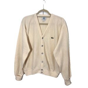 Vintage Izod Lacoste Cardigan Mens L Grandpa Alligator Logo Acrylic Grunge