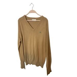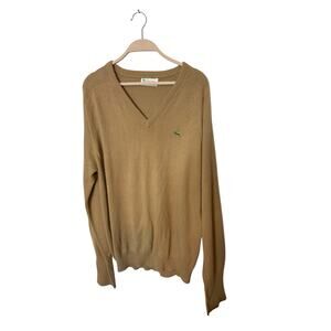 Vintage Izod Lacoste Mens Tag Sz XL Acrylic Pullover V Neck Sweater Tan