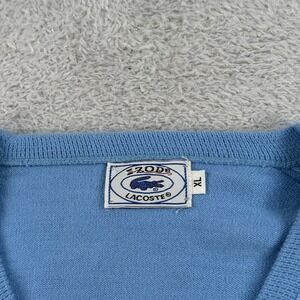 Vintage Izod Lacoste Sweater Size XL Blue Cable Knit Long Sleeve V-Neck Pullover