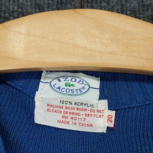 Vintage Izod Lacoste V Neck Knit Sweater Size 20 Blue Embroidered Crocodile Logo