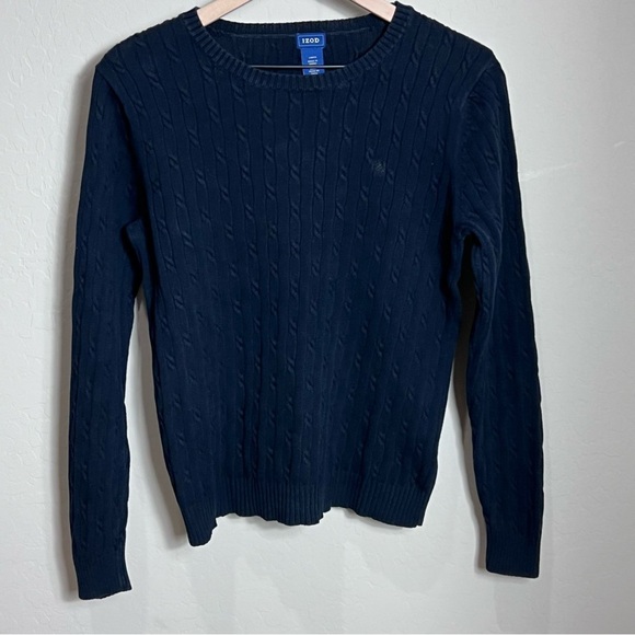 Vintage Izod Sweater Cable Knit 80’s 90’s Y2K Preppy Navy Blue Knit Grandpa Core