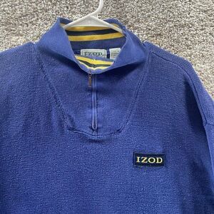 Vintage Izod Sweater Mens Extra Large Blue Yellow Quarter Zip Pullover Cotton