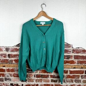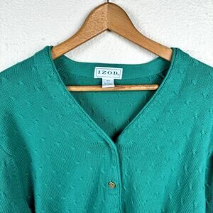 • Vintage Izod Sweater Green Cotton V Neck Button Up Cardigan Cable Knit