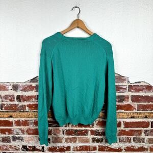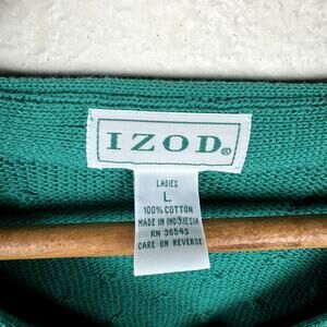 Vintage Izod Sweater Sz Large Green Cotton V Neck Button Up Cardigan Cable Knit