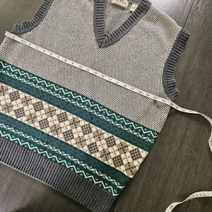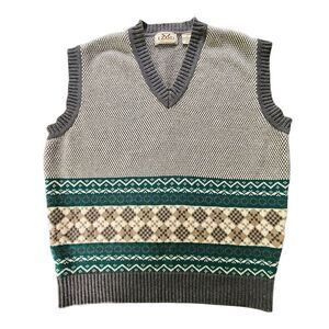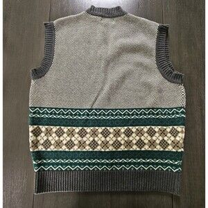 This Vintage Izod Sweater Vest in Men's size large. The beige color and argyle/diamond pattern add a touch of preppy charm, ideal for a golf course or country club appearance. Made of knit cotton with a tight-knit style and stretch fabric, this sleeveless vest is comfortable and stylish for the winter, fall, or spring seasons. The Izod brand and vintage details make it a timeless addition to any wardrobe, perfect for the 90s classic theme. Easy to care for with machine washable instructions. See pictures for measurements