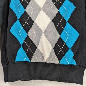 Vintage Izod Unisex Preppy Black Cotton Argyle V-Neck Neutral Sweater Size M