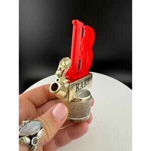 Plastic, twist-on J & B Rare Scotch Whisky pour spout. Chrome and red finish. Some tarnishing on the chrome, no major chips or cracks. 3.5" tall by 2.75" wide.
