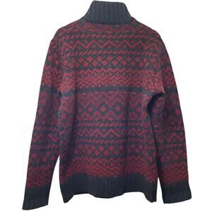 Vintage J. CREW 1/4 Zip Sweater 100% Lamb's Wool Fair Isle Men's Medium Red Gray