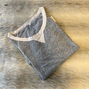 Vintage J CREW Heather Gray Cream Scoop Neck Shirt XS Long Sleeve Loungewear