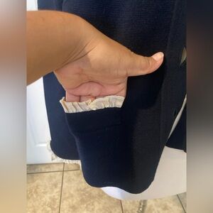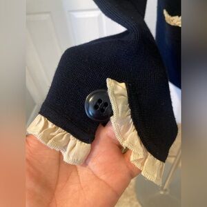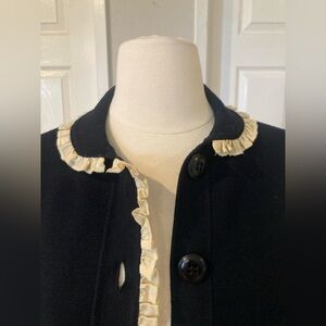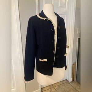 Vintage J. CREW Navy Wool Sweater Jacket Cardigan Portrait Collar Ruffle Trim