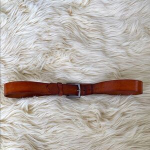 Vintage J. Crew Cognac Brown Italian Leather Belt Silver Buckle Made in USA M-L