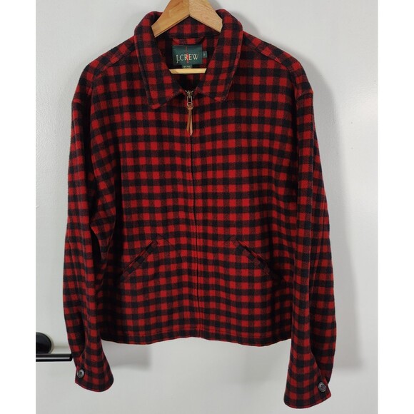 Vintage J Crew Jacket Wool Mens Medium Red Plaid Oarsman Wool Flannel