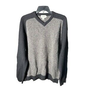 Vintage J Crew Men’s V Neck Sz Large 100% Wool Sweater 90’s Gray Navy #L6-4
