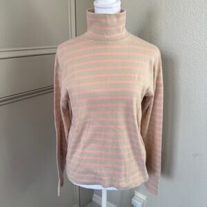 Vintage J. Crew Outfitters Turtleneck Tan Pink Stripe Size M 90s 100% Cotton