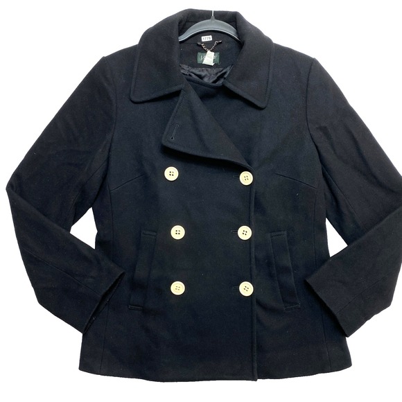 Vintage J. Crew Pea Coat Womens M Navy Double Breasted Nautical Jacket US Navy