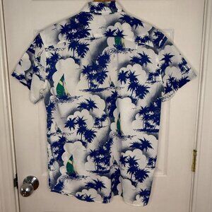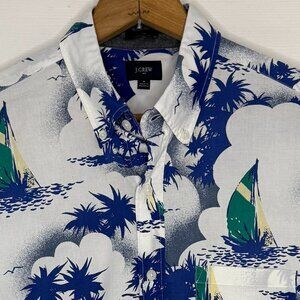 Vintage J. Crew White Blue Hawaiian Print Shirt Size Medium Slim