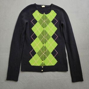This Vintage J. Crew Women XS Navy Argyle Wool Cashmere Blend Button Sweater Y2K is a classic and stylish piece perfect for various occasions such as casual outings, business meetings, or travel trips. The sweater features a tight-knit design with a round neckline, long sleeves, and raglan sleeves for a comfortable fit. Made from a blend of viscose, cashmere, wool, and angora, this lightweight sweater is perfect for the winter, fall, and spring seasons. The deep blue color and argyle/diamond pattern add a touch of hipster, designer, and preppy flair to your wardrobe, making it a versatile and timeless addition.