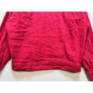 This J. Crew cardigan jacket combines casual style with comfort. Featuring a full zip, long sleeves, and a vibrant red denim fabric, it's perfect for layering in any season. Ideal for adding a pop of color to your outfit.