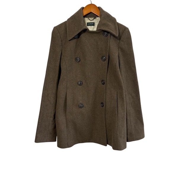 Vintage J. Crew Women’s Olive Green Button Up Pea Coat Preppy Outdoor Travel