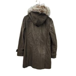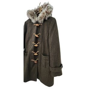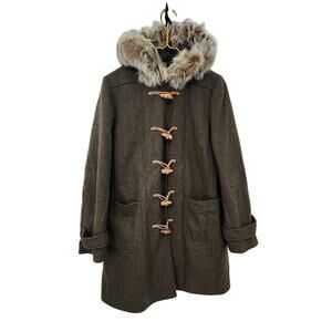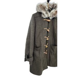 Vintage J Crew Wool Toggle Button Fur Trim Jacket Est Size Medium Large Green