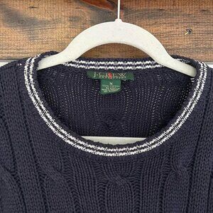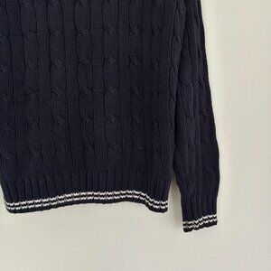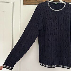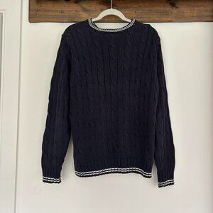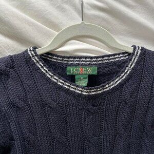 Vintage J Crew cable knit crewneck cotton sweater with white stripe details