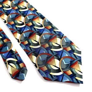 Vintage J. Garcia Collection 8 Clockworks Abstract Print Green Blue Silk Tie