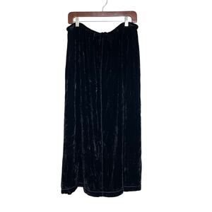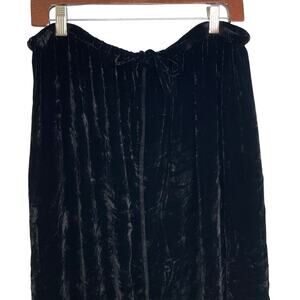 Vintage J. Jill Black Silk Blend Crushed Velvet Tie Waist Midi Skirt Size XLP