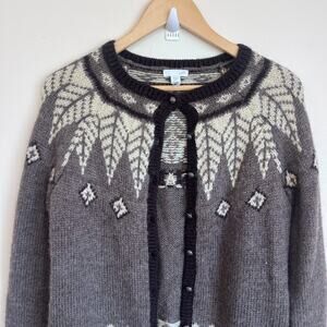 Vintage J. Jill Wildwood Nordic Fair Isle Women's Ski Cabincore Ski Cardigan Sweater Jumper