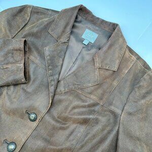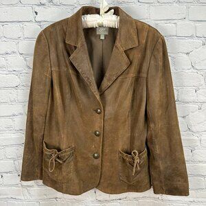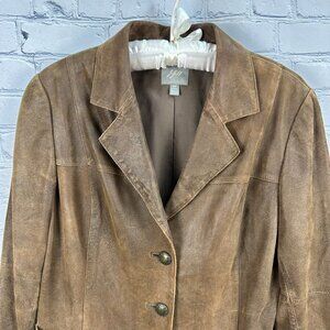 Vintage J. Jill Womens 100% Leather Blazer Style Jacket, Size Med. Petite, Brown