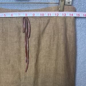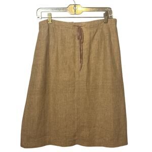 Vintage J. Jill Women's Linen Skirt Tan Leather Accent Tie Lagenlook SZ 10