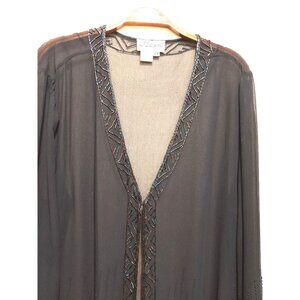 Vintage J Laxmi NY Size 2X Beaded Sheer Evening Cocktail Jacket Dark Blue