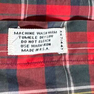 Vintage J. McLaughlin Men's Plaid Shirt. Super lightweight and vibrant red. 100% cotton, made in the USA. Pit to pit - 21, back collar to hem - 32.